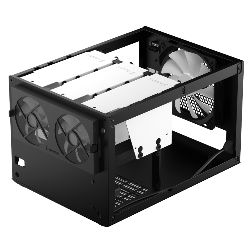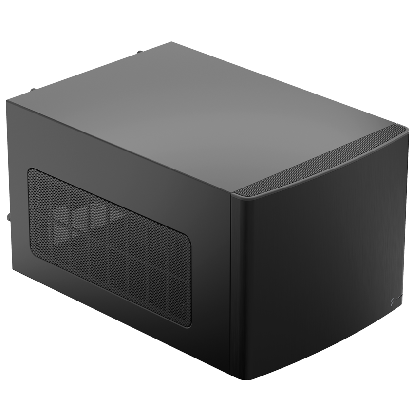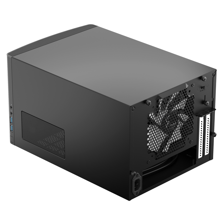 Boîtier format mini-cube très silencieux : 1 ventilateur 85 mm en face arrière + 1 ventilateur 120 mm en face avant.1 baie 5.25" (face avant), 2 baies d'extension (face arrière).
